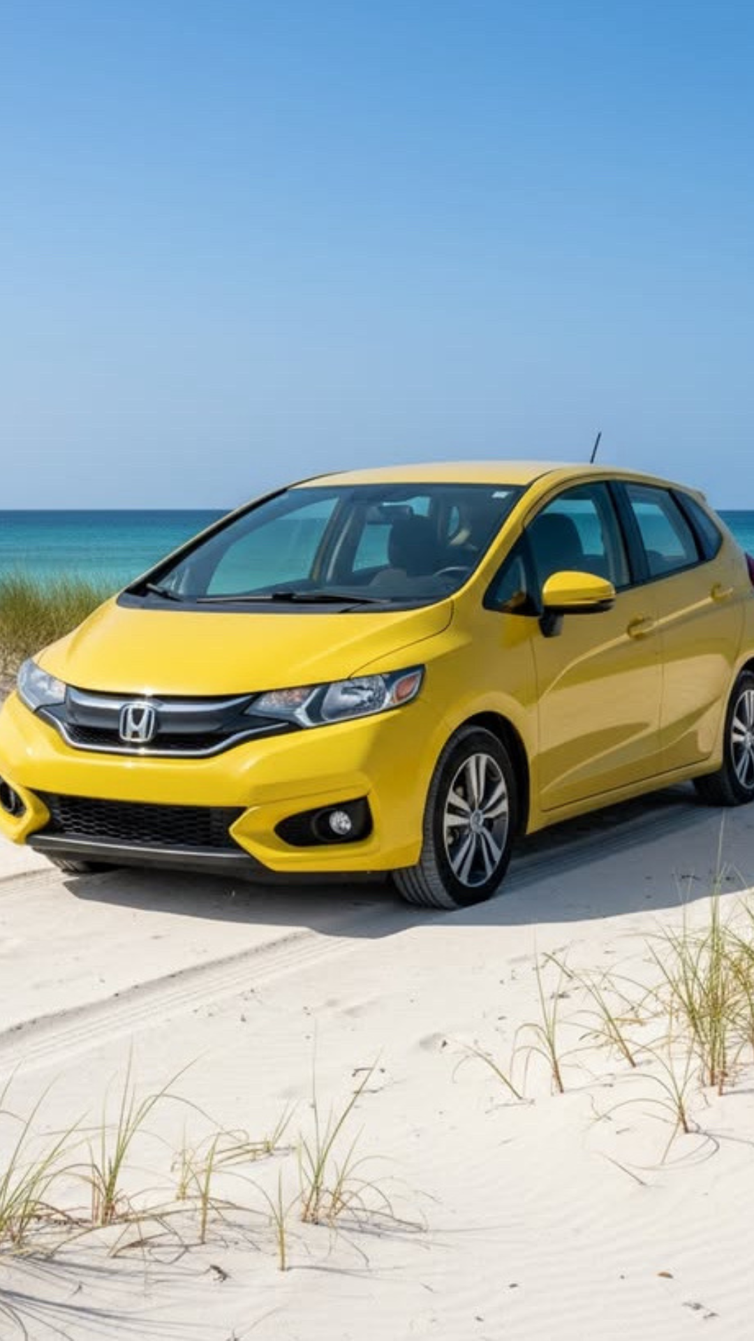 The Honda Fit is a compact and versatile hatchback that stands out with its cheerful yellow color. Its nimble handling, spacious interior for its size, and clever storage solutions make it ideal for city driving and weekend errands.